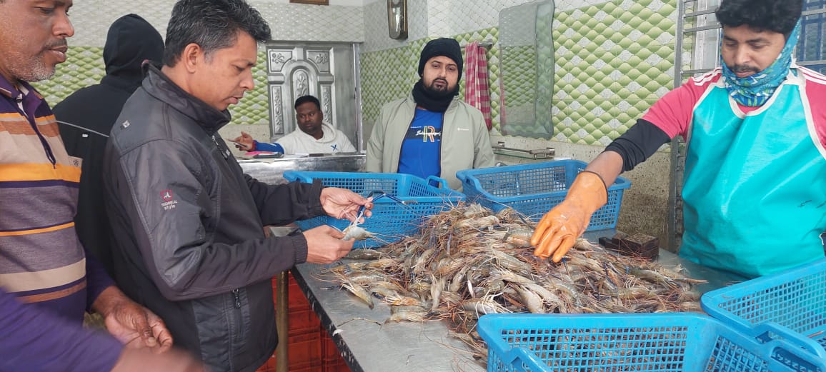 দলুয়া বাজারে চিংড়ি পুশ বিরোধী অভিযান